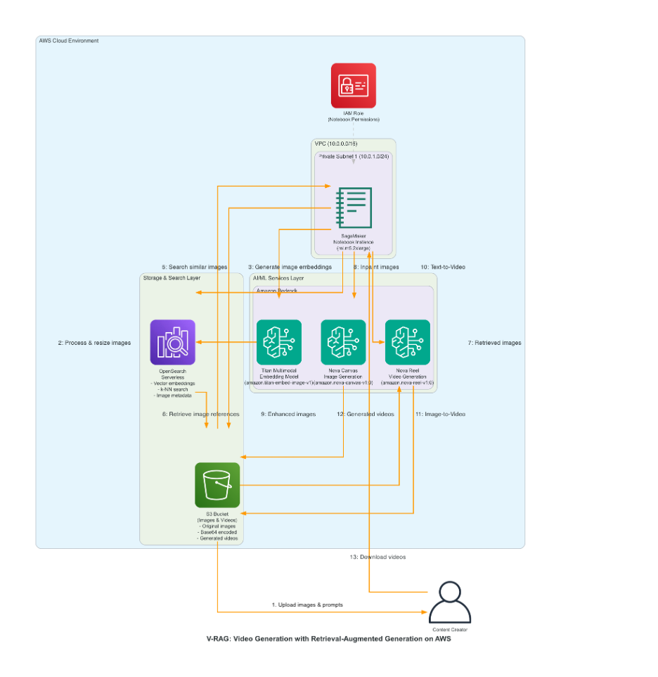 Amazon Web Services published a step-by-step guide this week for building a Video Retrieval Augmented Generation pipeline, or VRAG, using four existing AWS services: Amazon Bedrock, Amazon Nova Reel, OpenSearch Serverless, and S3. A CloudFormation template deploys the entire stack in the US East (N. Virginia) region with a single click. You pay only for what you use — no flat fee listed.